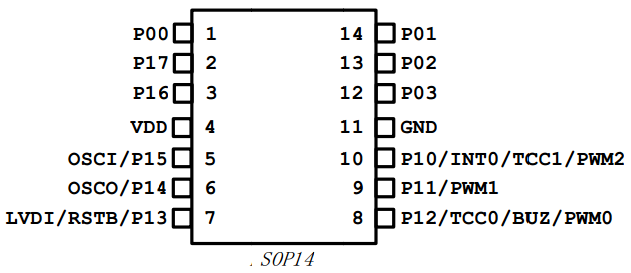 ²0.5K*14 程序存儲(chǔ)器器空間(OTP)),燒寫 2 次