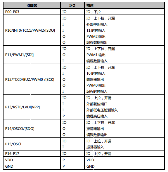 ²8 位 P1 端口,P13 為為開漏 IO 口(編程高壓 VPP 復(fù)用)