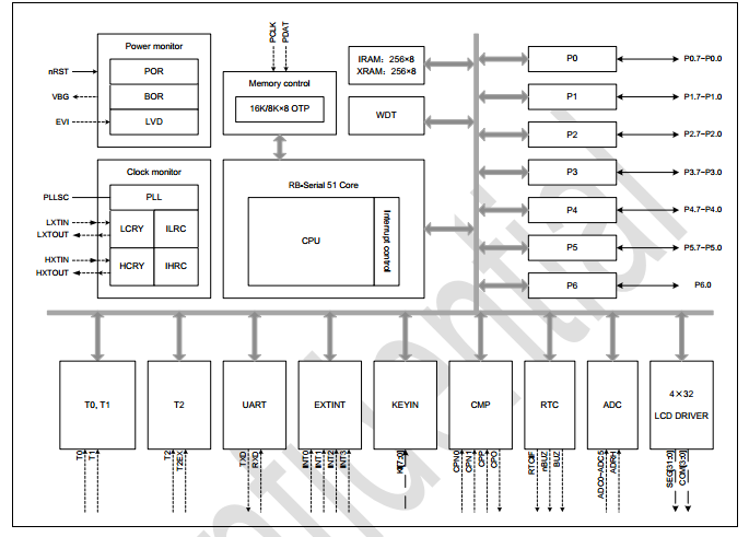 ² 外部低頻振蕩 LCRY, 32768Hz.